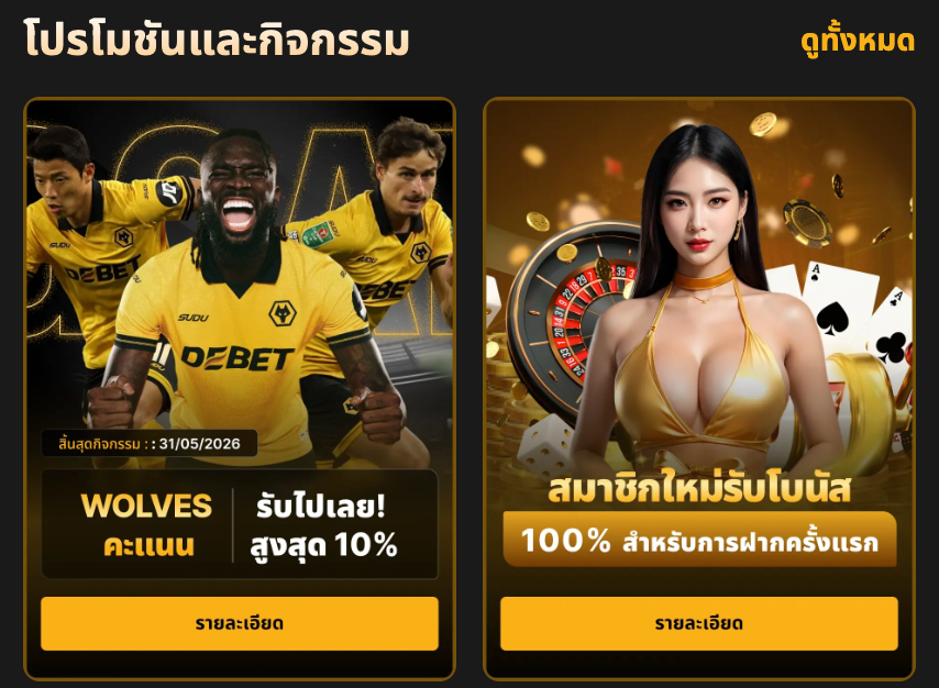 DEBET ภูมิใจที่ได้เป็นเจ้ามือรับพนันชั้นนำในยุโรป DEBET นำเสนอตัวเลือกเกมที่หลากหลายให้กับผู้เล่น ไม่ว่าจะเป็นการเดิมพันกีฬา คาสิโน เกมไพ่ สล็อต แจ็คพอต… แพลตฟอร์มที่โดดเด่น แนวการเดิมพันที่สร้างสรรค์ จึงเป็นจุดหมายปลายทางที่น่าสนใจสำหรับนักเล่นเกมตัวยง เรามุ่งมั่นที่จะสร้างสภาพแวดล้อมการเดิมพันที่ยุติธรรมและปลอดภัยสำหรับผู้เล่นเสมอ เมื่อมาที่ DEBET ลูกค้าจะได้สัมผัสประสบการณ์การเดิมพันออนไลน์คุณภาพเยี่ยมที่หาได้ยากในตลาดอื่นๆ ดูเพิ่มเติม